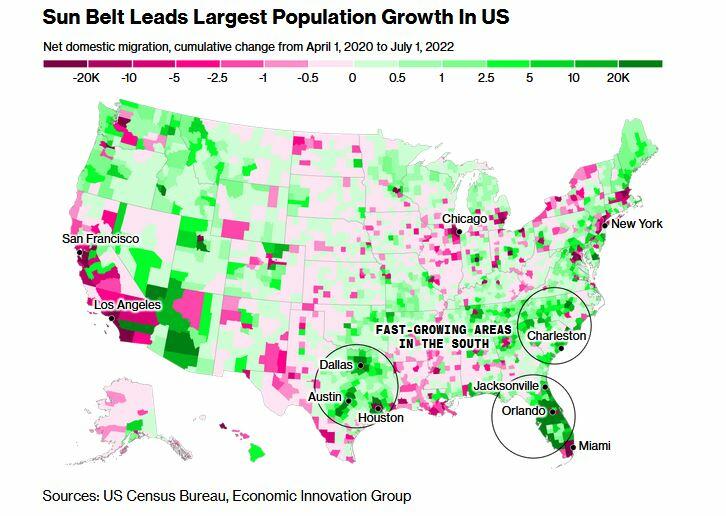 Thanks to a flood of transplants during the pandemic, six southern states have been growing at breakneck speed – as approximately $100 billion in new income in 2020 and 2021 have begun to reshape the southern US.
