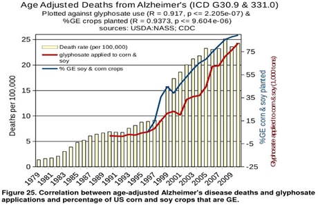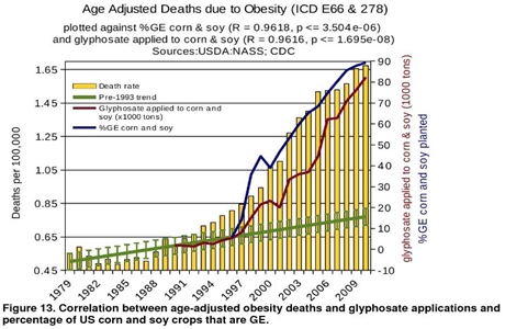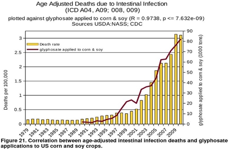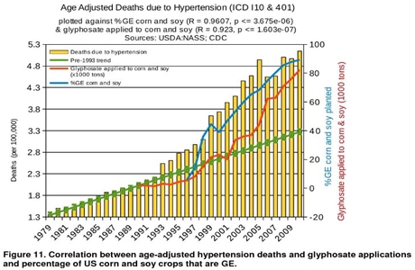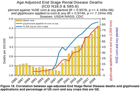 A study from the Journal of Organic Systems includes the following 12 charts which show the correlation between Roundup (technically known as “glyphosate”) and disease: