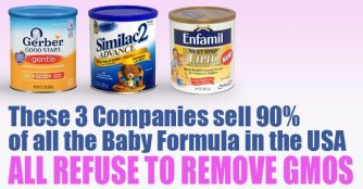 It seems with the many reports of birth defects, organ failure, cancer, and other unsavory health conditions associated withGMO consumption, we should limit the use of GMO in baby products. After all, babies are very sensitive to the foods they consume, and we already know that pesticides found in mother’s milk can be damaging. Below you will learn of three companies which represent more than 90% of baby formula sales in the US that won’t consider removing GMOs from your baby’s food.