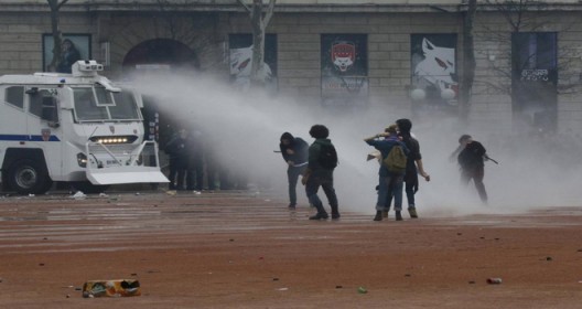 Several protest marches ended in clashes with police, including in Paris, Nantes, and Rennes. In the Paris area, police arrested a dozen people for throwing projectiles. In Nantes, they used water cannon to attack protesters.