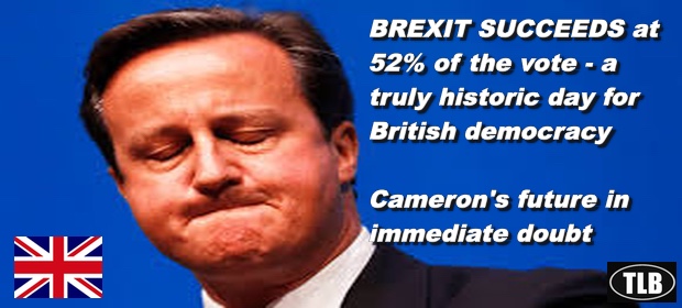 Britain has been hit by a political earthquake after the historic EU referendum delivered clear backing for Brexit – and effectively ended David Cameron’s career.