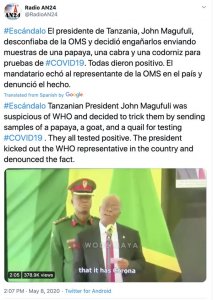 He played what the local press described as “a trick” on the organization: He sent the WHO samples of a goat, a papaya and a quail for testing.