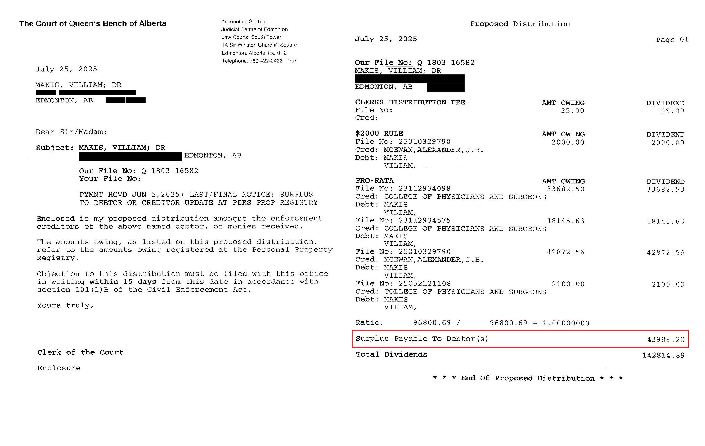 Court of King’s Bench of Alberta has just ruled those funds must be RETURNED to me.