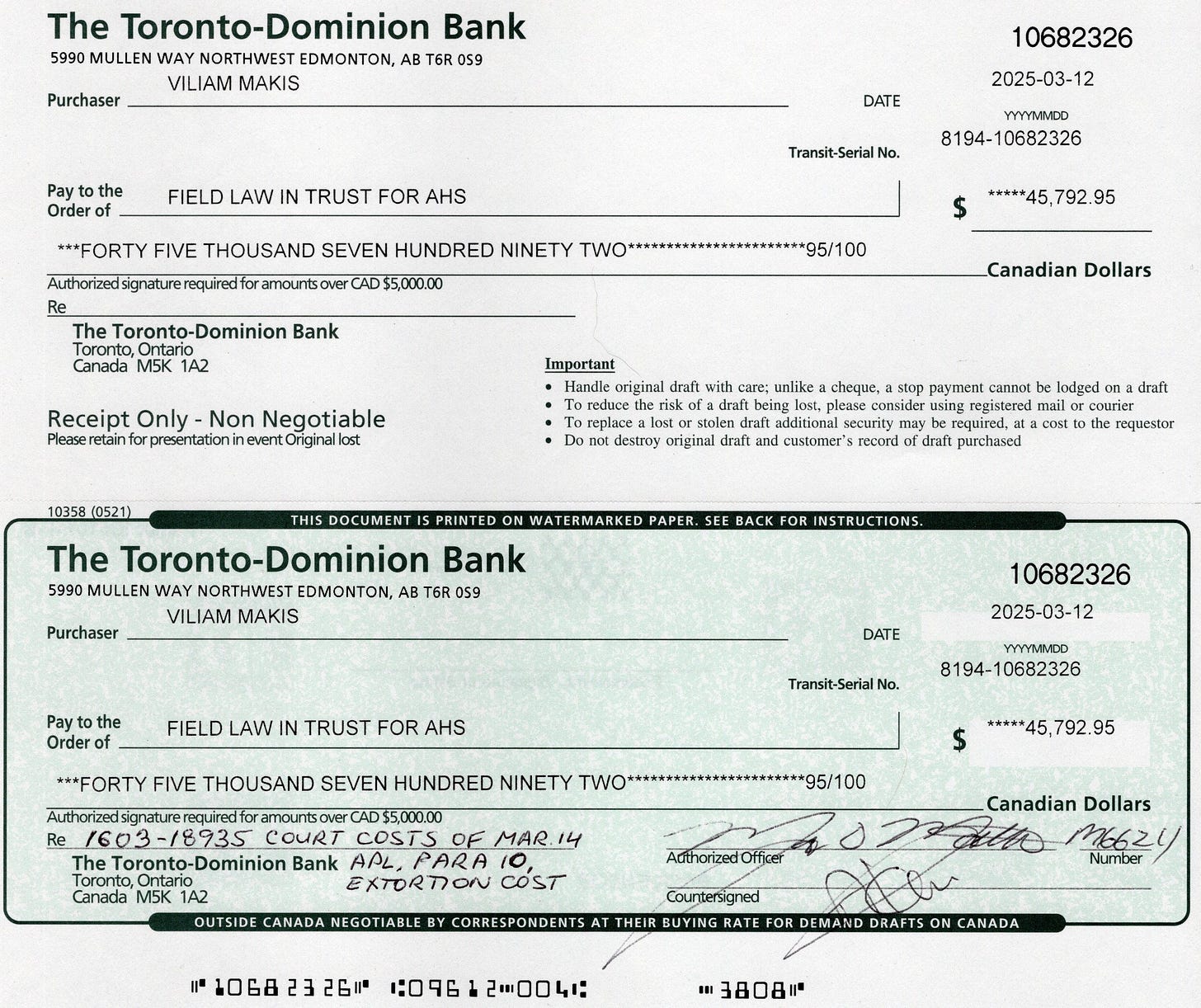 Mar.12, 2025: $45,792 extortion payment paid to Danielle Smith and AHS