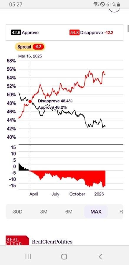 Based on the facts, not narratives, ALL IS NOT WELL and it will never be well again. So what does this mean for you and me? The mid-term elections are in ten months. Based on history, the president’s party loses seats 90% of the time. Based upon this do nothing GOP congress accomplishing nothing beneficial to the average person, Trump will surely lose the 6 seat majority House by at least 25 seats and at least a couple Senate seats. The GOP will not even pass the SAVE Act to secure honest elections. The Uni-party doesn’t seem to want honest elections. Trump’s approval rating continues to plummet and his daily unhinged posts on Truth Social are not helping. I expect Trump to act in an even more authoritarian manner as the elections approach. The MAGA NPCs will approve.