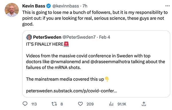 As recently as February 4, 2023, Bass blew them off en masse as being “no good.” His dismissal of the Stockholm conference as a whole — during which scientists and doctors from around the world reviewed the very mistakes he admitted to in his Newsweek “apology” — also raises questions about his sincerity.