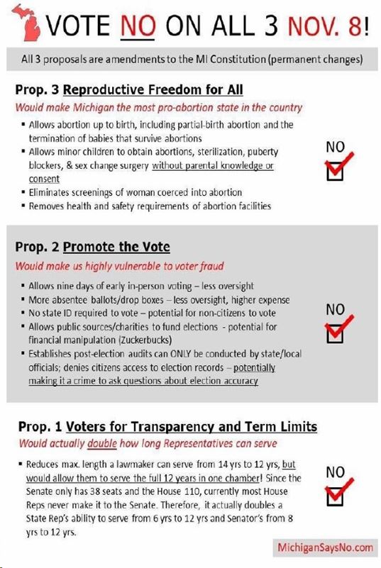 And, of course, yes, the Baby-Killing-Cult has an initiative on our ballot that will NOT ONLY allow for more than Roe V Wade that was over-turned by SCOTUS, but beyond. Including in their “Reproductive Rights” (Proposal-3) initiative, ELIMINATION OF 50 MICHIGAN LAWS. Including the elimination of STATUTORY RAPE Laws. That’s right, on top of removing PARENTAL CONSENT or even PARENTAL NOTIFICATION for a Child to have a sex-change (when they cannot decide to Smoke, or buy a Gun, or so many things, BECAUSE THEY ARE CHILDREN without fully formed Brains yet), but too a Pedophile can prey on them for Sex without consequences. That, on top of, making Michigan not only the most ABORTION ON DEMAND, AT ANY TIME, FOR ANY REASON, PERFORMED EVEN BY NON-MEDICAL PERSONAL, ZERO MEDICAL PROTECTIONS, that would make Michigan’s Law worse than the Nations of China and North Korea. And we know we are not the only State the far-left are trying this.
