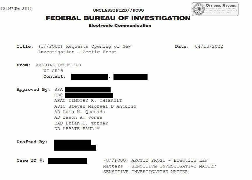 Thanks to releases by FBI Director Kash Patel and Senate Republicans (here and here and here), we are finally getting sunlight into the FBI’s overarching investigation of not only President Trump but of nearly everyone in his orbit – the investigation assigned the name “Artic Frost.”