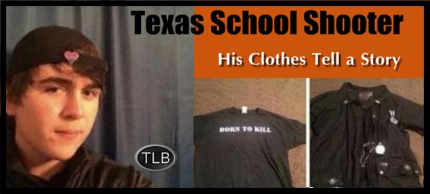 A closer look reveals a disturbing message scrawled on one of the shooter’s shirts.