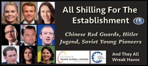 ER Editor: A reminder that Wunderkind Sebastian Kurz was one of the stable of photogenic Young Global Leaders and Chancellor of Austria after being its foreign minister in his late twenties. As Chancellor, he got taken down in a couple of scandals, in stepwise fashion, until he left politics entirely and was taken up (rescued?) by Peter Thiel. He’s now facing more charges for having put a party crony and confidante in a top position and later lying about it to a parliamentary investigation, as detailed below in a piece for Politico. Kurz is bottom left in the image below —