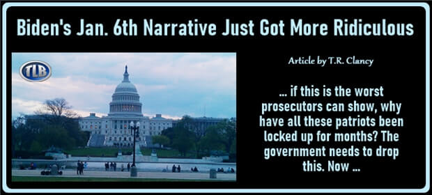 The above article (Biden’s Jan. 6 Narrative Just Got Even More Ridiculous) is republished here under “Fair Use” (see the TLB disclaimer below article) with attribution to the articles author T.R. Clancy and website americanthinker.com.