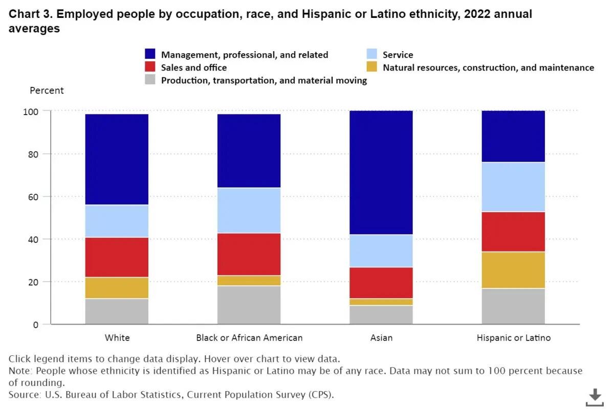 Blacks and Hispanic workers also disproportionately occupy positions in production and transportation/material moving jobs at higher rates (17.8 percent and 16.7 percent, respectively) than whites (12.1 percent). But those are the jobs most vulnerable to being taken by the influx of the purported asylum seekers who typically work for less and are less likely to join unions or file complaints with the authorities against their employer. The asylum seekers have exploded since President Biden lifted U.S. border restrictions.