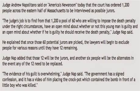 Here is what Judge Napolitano said on Fox New’s “America’s Newsroom” about the forthcoming trial of Dzhokhar Tamerlan in Boston: