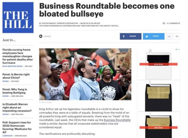 To read Justin’s full commentary – “Business Roundtable Becomes One Bloated Bullseye” – at The Hill website, click here.