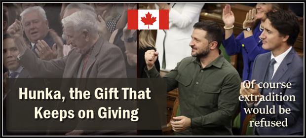 ER Editor: A reminder that Putin addressed head-on with Tucker the Yaroslav Hunka affair in the Canadian Parliament last week. TASS has picked up on Canada’s recent refusal to extradite the man. Hunka was tried in absentia for genocide of civilians and found guilty.