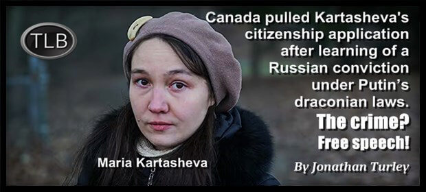 Canada yanked Kartasheva’s citizenship application after learning of a Russian conviction under Putin’s draconian laws. The crime? Free speech!