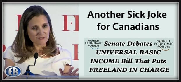 Canadian Finance Minister Chrystia Freeland Bloomberg / ScreenshotOTTAWA – The Canadian Senate is currently in the second reading session for a bill that seeks to develop “a national framework for a guaranteed liveable basic income.”