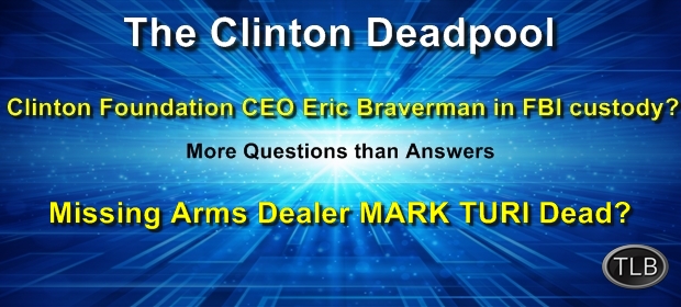 There is a man on YouTube who has been following the Eric Braverman story, along with the story of a missing arms dealer named Marc Turi. If you remember, Turi was set up as the fall guy for the Benghazi arms deal by Obama and Clinton. The DOJ was to prosecute Turi, but he went to Fox News and told his story. Eventually the DOJ dropped the case. However, Turi was a very bold man, as he threatened to drop a bombshell on Clinton. Now he has disappeared, too. It is believed he could be a part of the CLINTON DEADPOOL.
