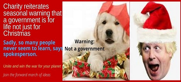 The Charity NOPES today issued a warning to the 13-plus million voters who decided to adopt this Christmas a Tory government to replace the Tory government that they voted to adopt last time that, “A government is for life, not just for Christmas.”