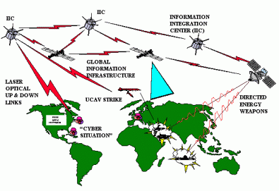 | Space-based directed energy weapons. Image graphic from the Air Force report on the “Eye in the Sky” that “sees everything.” |