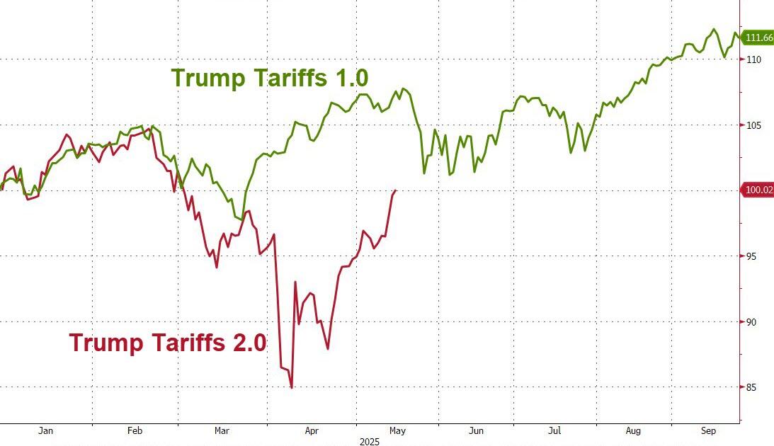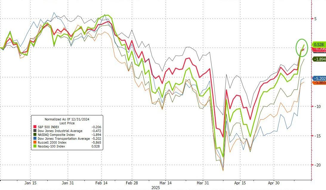 (ZH) – Following yet another decline in CPI (but… but… but… tariffs are inflationary… or maybe just the “lack of inflation from tariffs is transitory”), the S&P joined the Nasdaq 100 in the green year-to-date, erasing all of the panic-puke, ‘end of the world’ prognostication from the mainstream media and establishment.