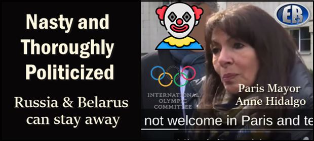 ER Editor: The Paris Olympics this summer has become Clown World. The city’s mayor Anne Hidalgo is one of those globalist-socialists we’ve learned to recognize and despise. Few seem enamoured here by the prospect of the Games, including us. Here’s a little news update on this auspicious (cough) event, with exclusion of Russian and Belarusian athletes being the top agenda item. The IOC isn’t looking any better either. See Hidalgo’s comment about Israel …