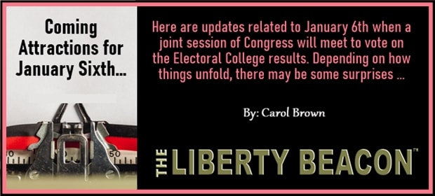 Here are updates related to January 6th when a joint session of Congress will meet to vote on the Electoral College results. (Depending on how things unfold, there may be some surprises. Some could be quite shocking. More on that further down on the blog.)