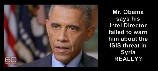 He first addresses Obama’s appearance on “60 Minutes” blaming the rise of the ISIS machine on lack of proper intelligence from the department he oversees. What a gross embarrassment of the abilities of U.S. intelligence if Obama was being transparent. However, we know that lawmakers were warned some time ago about the dangers of the growing militant faction; it’s just that our President avoided the memo.