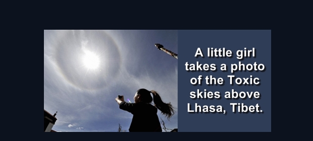 A little girl takes a photo of the toxic skies above Lhasa, Tibet. Source: dailymail.co.uk