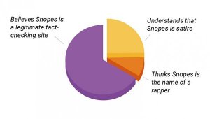 The survey found that over 60% of people believe Snopes is a real website, while only 25% understand that it’s satire. The remaining minority thinks that Snopes is the name of a gangsta rapper from California, “one of those guys who makes the hip-hop about the devil’s lettuce and shooting people.”