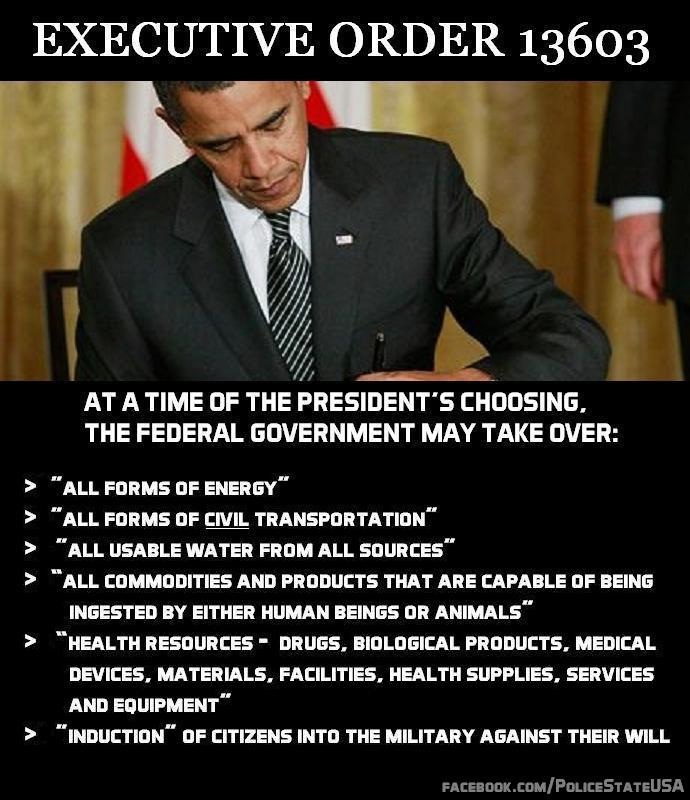 While compiling data for this story, it dawned on me, that Obama has already prepared for these contingencies. This preparation took the form of Executive Order 13603.