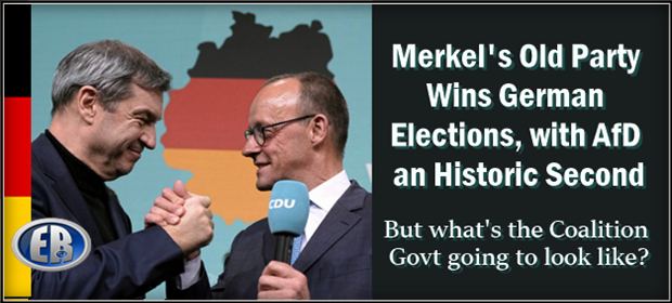 ER Editor: This is a useful article to throw in with the preliminary results from RT below, as it illustrates the problem of who really governs Germany – a coalition, not a winning party. Merkel’s old party won under Friedrich Merz at almost 29% with the AfD taking 21%, but Germans may still end up with a left-leaning coalition nonetheless. Because, gasp, power sharing with the AfD is still off-limits. See —