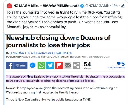 ER Editor: We highly recommend this New Zealand substacker, SeeMoreRocks, Robin Westenra. It sounds like New Zealanders are being done a service. We wonder who is really behind this collapse of elite/corporate media control, which has great power to nefariously influence a small country like New Zealand.