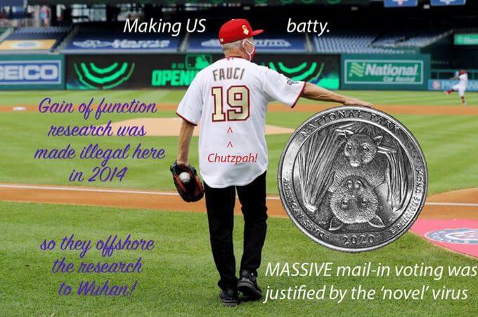 We all know the adage, “If you repeat a big lie often enough…”. In this case the repeated lie is “China virus”. Yes, China was involved in the “gain of function” research into the bat coronavirus. What is buried by the repeated lie is the fact that much of the research into making a bat coronavirus capable of infecting humans was accomplished in the United States. In an attempt to distance US research activities, a “partial stop work order” was issued: