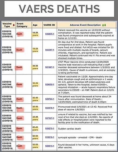 However, if you are still not convinced that this vaccination carries an element of risk, then I suggest that you read this US Vaccine Adverse Event Reporting System (VAERS) report provided to us by an interested party.