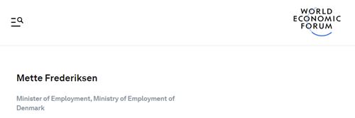 Mette Frederiksen can be found on the WEF website, without photo, from her days as Minister of Employment.