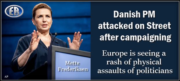 Denmark’s Prime Minister Mette Frederiksen has been attacked on the streets of Copenhagen on the eve of EU, MEP elections.