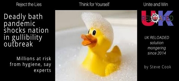 Many people and other dissidents are expected to ignore government advice in the best British tradition of dealing with stupid people and quite possibly string up the Health Secretary and take unprotected baths whenever they feel like it. It is expected, however, that the ten percent of people who do everything the government tells them to do and can be identified by their dedicated mask-wearing will now refrain from bathing in best bovine (or, alternatively, ovine) tradition until the deadly bath pandemic is over.