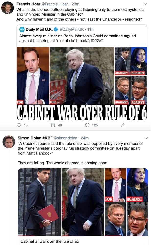 Sheriff of Nottingham’s line, “And cancel Christmas!”, in the Kevin Costner film version of Robin Hood? (It was actually ‘call off Christmas’.) Well, that line is going around on Twitter as Johnson is threatening that Christmas family gatherings will be affected. It’s that bad.Is this not the point of a two-party system, where both sides are putting the thumb-screws on the citizenry on behalf of some elite agenda?
