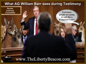 Perhaps we should consider what Mr. Barr sees when he sits down before a committee, as depicted in the following meme via TLB…