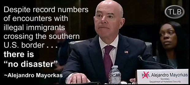 Despite record numbers of encounters with illegal immigrants crossing the southern U.S. border in their thousands every day, including suspected terrorists, the head of the Biden Department for Homeland Security claimed under oath [this week] that there is “no disaster”.