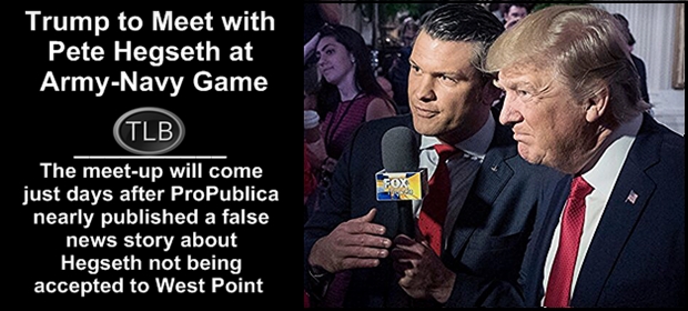 The Army-Navy game meet-up will come just days after ProPublica nearly published a false news story about Hegseth not being accepted to West Point