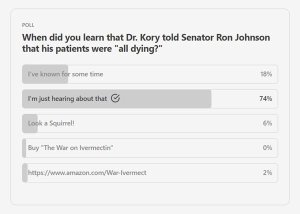 Kory’s camouflage is very good, I have to admit. Ivermectin works. Yes it does. It works so well that I didn’t even know until recently that all his patients died. It just never came up in the blizzard of Ivermectin talk surrounding Dr. Kory. Look a squirrel.
