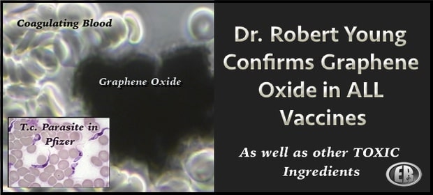 ER Editor: Dr. Robert Young‘s recent paper, showing detailed analysis of both the blood and the vaccines, is very technical but well worth the effort. In sum, graphene oxide has been found in all four vaccines. In addition, Trypanosoma cruzi Parasites have been found in the Pfizer vaccine, which are composed of carbon, oxygen chromium, sulphur, aluminum, chloride and nitrogen. The nanoparticulate components of all vaccines make for very interesting and disturbing reading, as do those components that create magnetic effects in the body. A question we are left with is, what is the additional effect on all this if we add environmental radiation into the mix? After all, graphene oxide is an extremely conductive substance, very responsive to electromagnetic radiation. Young’s work also includes analysis of the blood of the vaccinated.