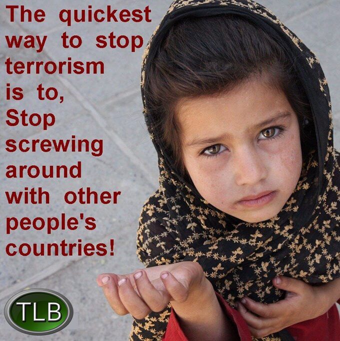 How about we use those funds and put even more Americans to work rebuilding a collapsing infrastructure, invest in shoring up a failing education system, funding new hi-tech industry or research projects, get us back into space, put Social Security back on a solid footing, decrease the annual deficit, seal our southern boarder … build a wall … hell there are a thousand ideas that sure beat perpetual warfare, killing and the continuous manufacturing of more enemies of We The People!