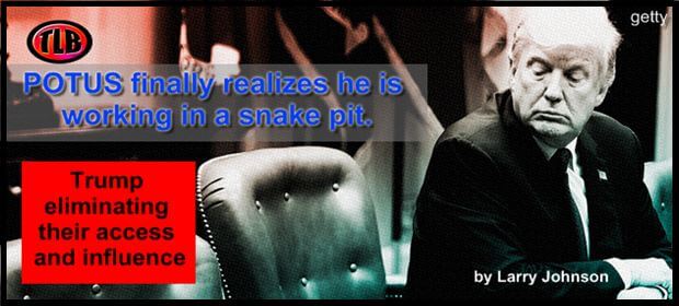 Looks like President Trump finally realizes that he is working in a snake pit. When he took office on January 20, 2017, he left an enormous cadre of Obama/Hillary sycophants in place. He could have (and should have) moved them out and reassigned them to the bureaucratic equivalent of Siberia. But he did not. Take the case of Tina Kaidanow, who headed up the Bureau of Counter Terrorism when Trump took over. Rather than asking for her resignation she was put in as the number two person in the Bureau of Political Military Affairs.