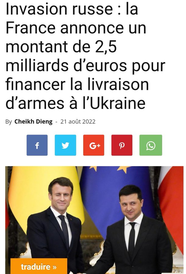 Russian invasion: France announces a sum of 2.5 billion (million? ‘milliards’ translates both ways) euros to fund weapons delivery to Ukraine