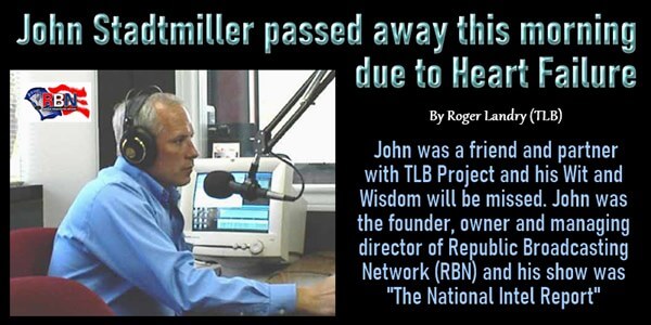 My last comment before you delve into this recorded discussion is the dedication and faith John had and displayed in Republic Broadcasting Network. I can’t help but truly believe that John would wish to see RBN remain viable. As for The National Intel Report … for right now it is a platform for tributes to RBN’s Founder and Director, after this … we will see.