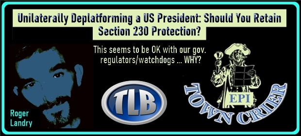 ERADICATING PROGRAMMED IGNORANCE – TOWN CRIER: Unilaterally Deplatforming a US President – Should You Retain Section 230 Protection?