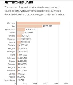 It’s not easy to discover how many vaccines have been thrown out. Governments, including the EU’s second-most populous country France, are reluctant to reveal the scale of the waste.